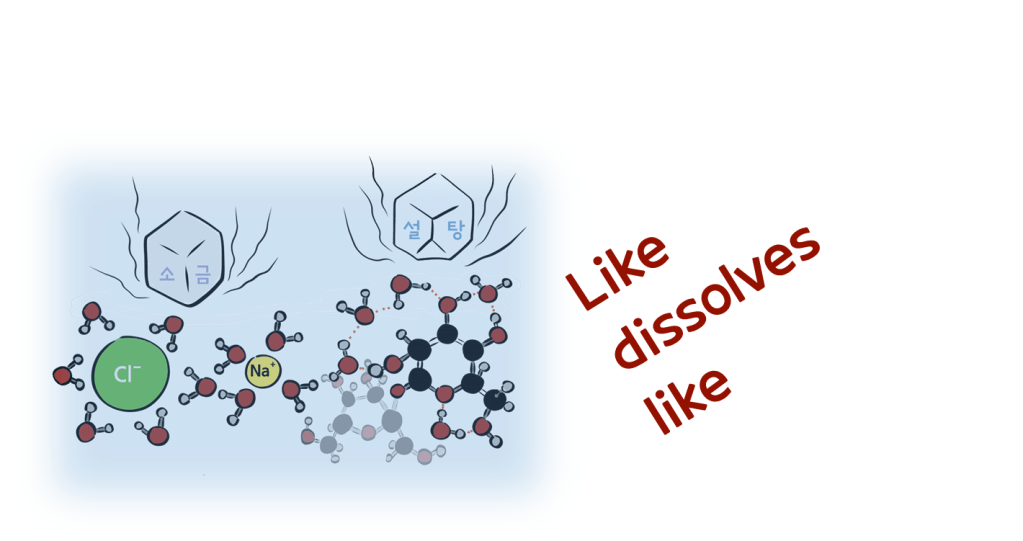 - The first rule of this chemical interaction, which can be interpreted as “Like dissolves like,” is something we experience every day with the beverages we drink.