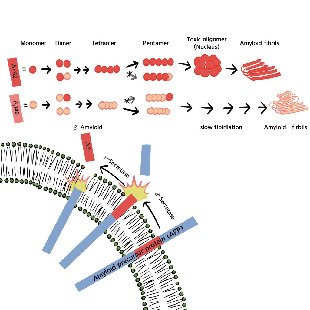 The most prominent amyloid protein is β-amyloid peptide 1-42 (Aβ42). Alzheimer’s Disease (AD), the most common form of dementia, is characterized by the accumulation of neurofibrillary tangles and amyloid plaques, which are aggregates of microtubule-associated protein tau and β-amyloid peptides (Aβ), respectively. Numerous studies have identified the cleavage of amyloid precursor protein (APP) into the neurotoxic Aβ42 as a major cause of AD. APP, located in the cell membrane, is highly expressed in the brain and is processed into Aβ peptides by the enzymes β-secretase and γ-secretase. Aβ peptides can vary in size, ranging from 37 to 43 amino acids, with Aβ42 specifically containing 42 amino acids.