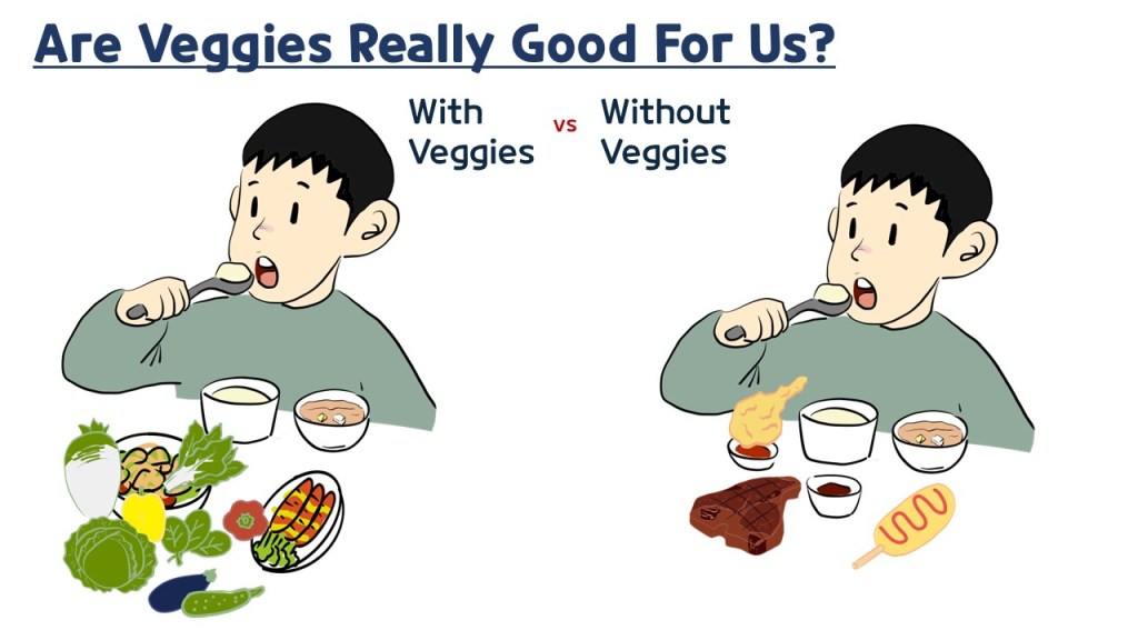 Vegetable, veggies are parts of plants that people and many animal eat.They contain nutrients that help us stay healthy.Humans started gathering wild veggies around 10,000 years ago, and farming them began shortly after, during the Agricultural Revolution.For thousands of yearsVeggies have been an essential part of our diet!Are Veggies Really Good for Us?